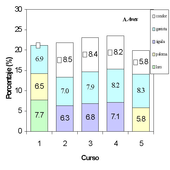 Fig.1.a . Las cinco primeras especies de aves recordadas por alumnos del Liceo C-8 de Puerto Williams. Chile, Región de Magallanes (XII).