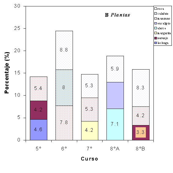 Fig. 2. Las cinco primeras especies de plantas recordadas por alumnos del Liceo C-8 de Puerto Williams. Chile, Región de Magallanes (XII).