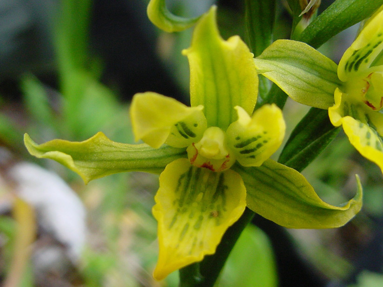 Presencia de Gavilea kingii (Orchidaceae) en Magallanes: detalle de una flor (foto del autor).