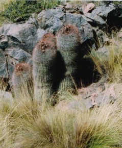 Diversidad de la flora de La Payenia, Argentina: Denmoza rhodacantha (Salm-Dyck) Britt. & Rose (Cactaceae). (Foto: Autores)