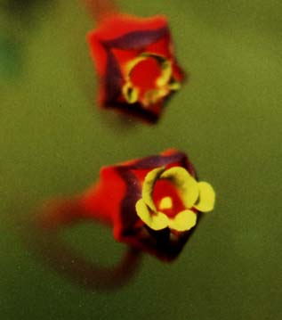 Hierba perenne, trepadora, presente en la flora chilena desde Antofagasta hasta Bío-Bío. Cáliz rojo y corola amarilla. |