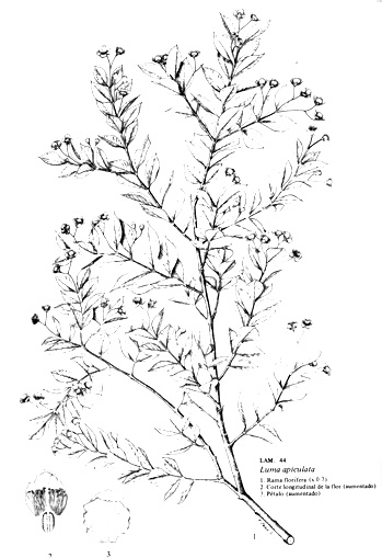 Myrtaceae-Myrtoideae: Luma apiculata, "arrayán de palo
