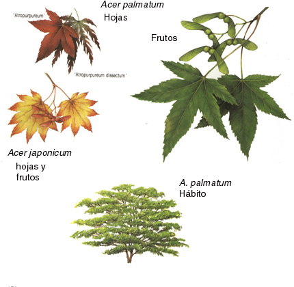 Aceraceae: Acer palmatum, "arce japonés". Arbol caducifolio.