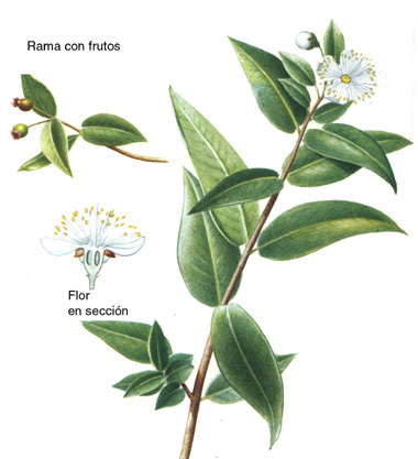 Myrtus communis (Myrtaceae); arbusto muy cultivado en la Zona Central de Chile