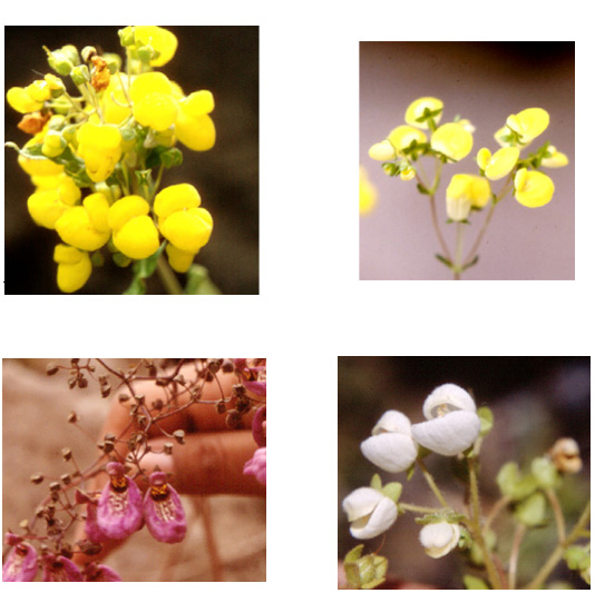Scrophulariaceae: Calceolaria, variación de la forma y color de la corola.