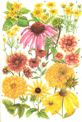 10. Heliopsis scabra. 11-12. Rudbeckia spp.