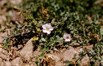 Convolvulus demissus, hierba perenne, tallos tendidos.