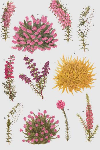 Ericaceae: varias especies de Erica (brezos). Arbustos bajos.