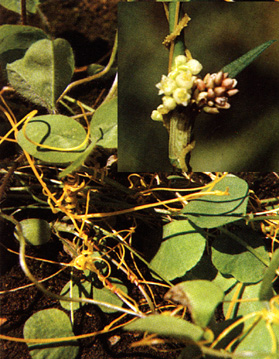 Convolvulaceae, subfamilia Cuscutoideae: Cuscuta sp. hierba anual,