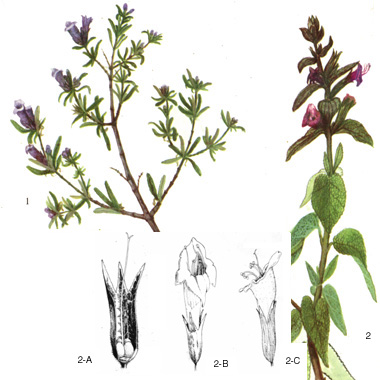 2. Sphacele salvia, salvia blanca, 2-a. Calíz y gineceo. 2-b