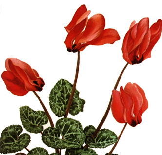 Primulaceae: Cyclamen persicum, "violeta de los Alpes", especie ornamental.