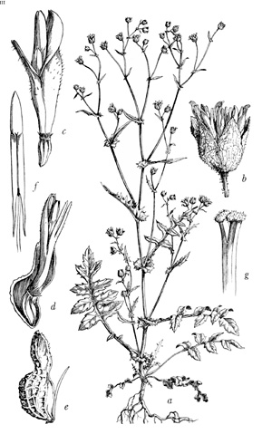 Hierba anual, con flores blancas. Muy frecuente en el matorral esclerofilo