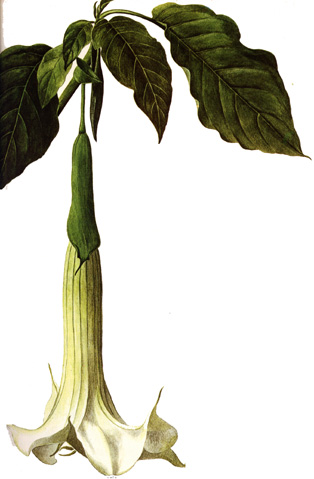 Solanaceae-Solanoideae: Brungmansia (Datura) suaveolens,