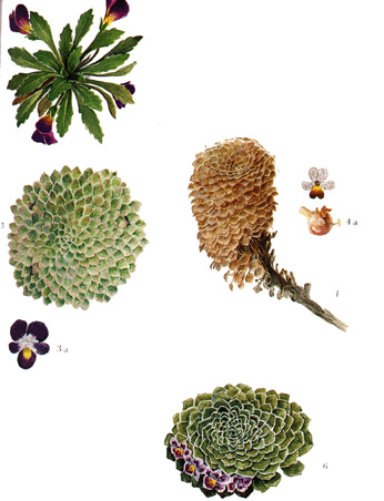 A-B Viola tricolor, "pensamiento", planta. a': Cápsula